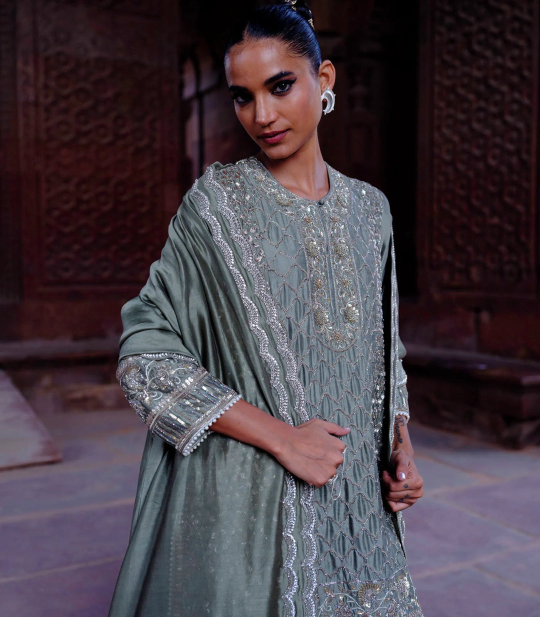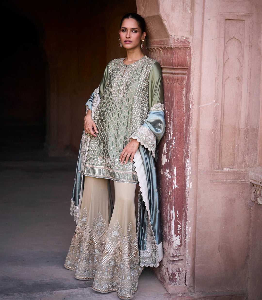 Misha Tunic with Gotta Sharara & Bird Dupatta