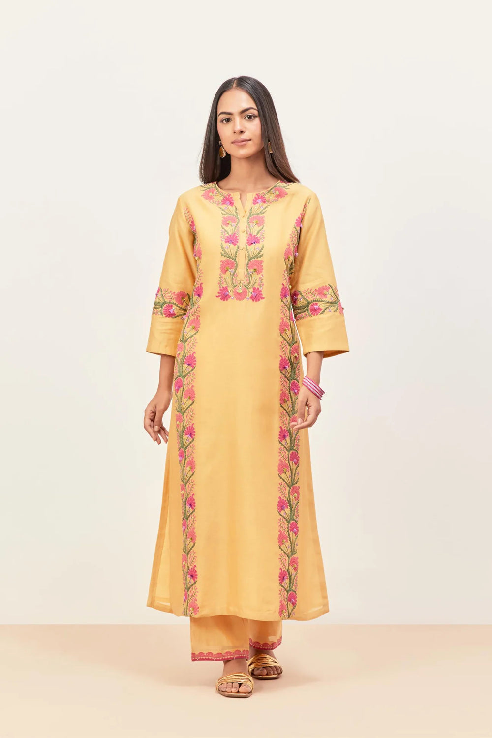 Sobia - Mustard Long Kurta with Palazzo and Dupatta
