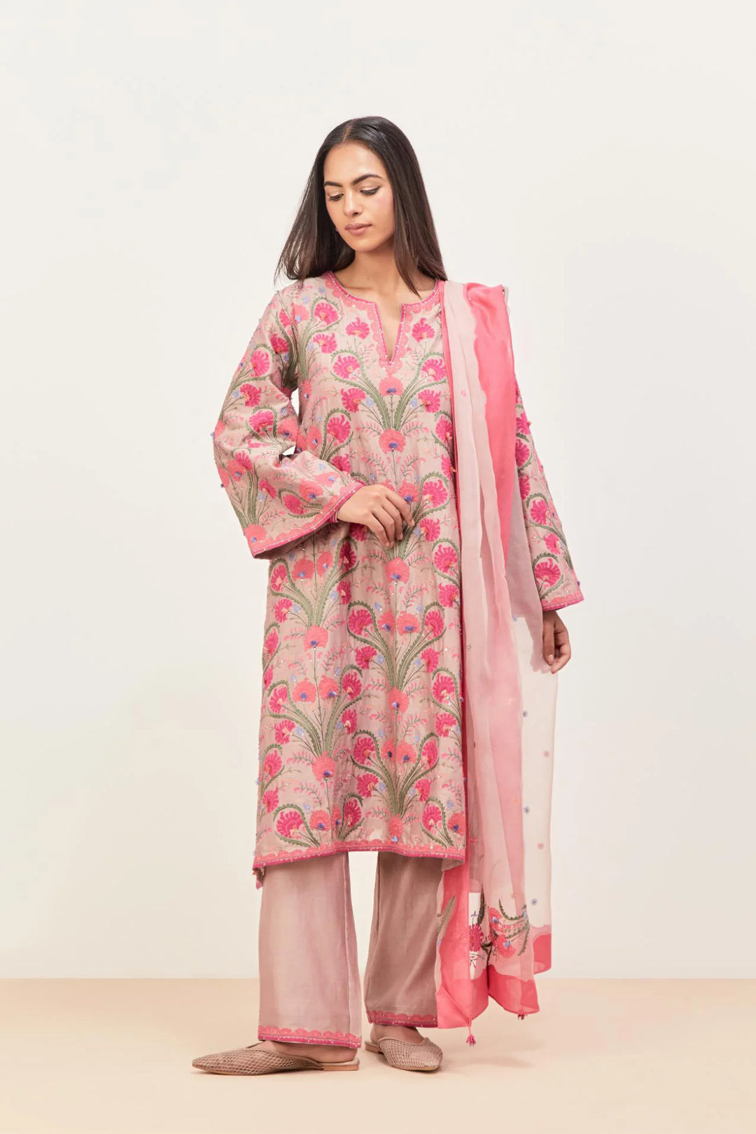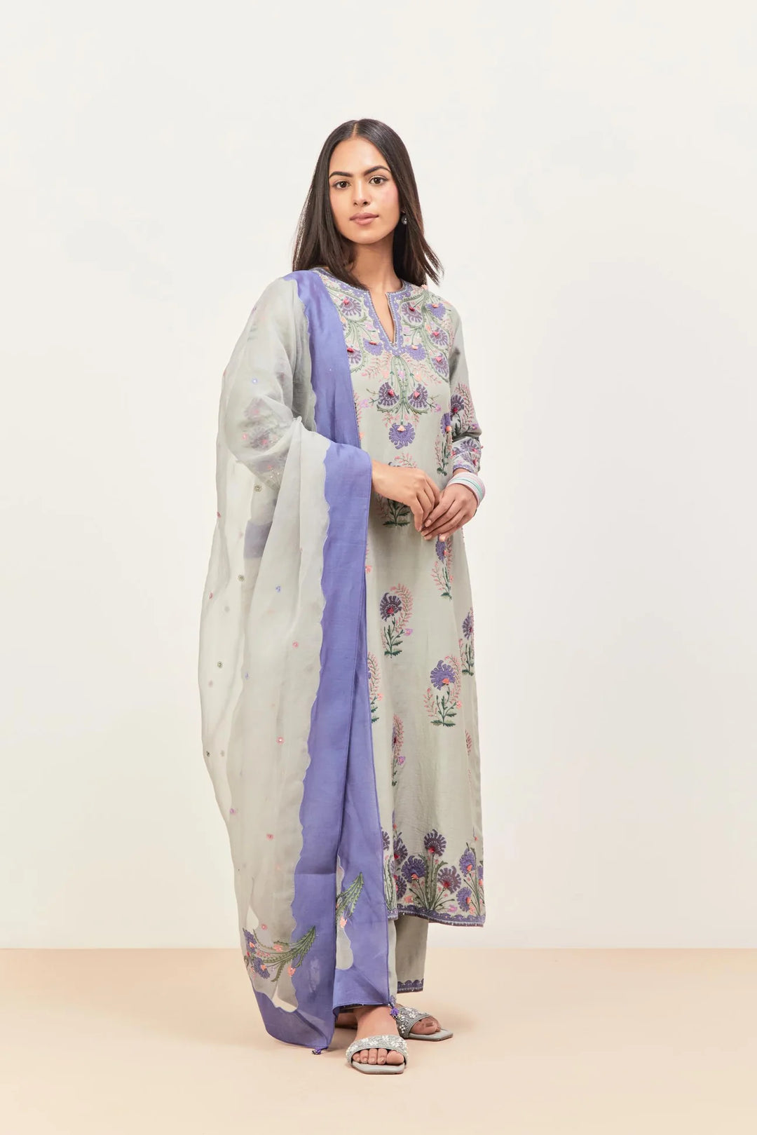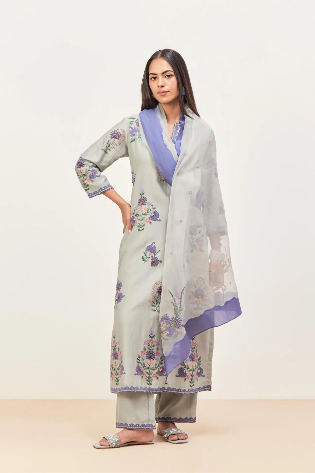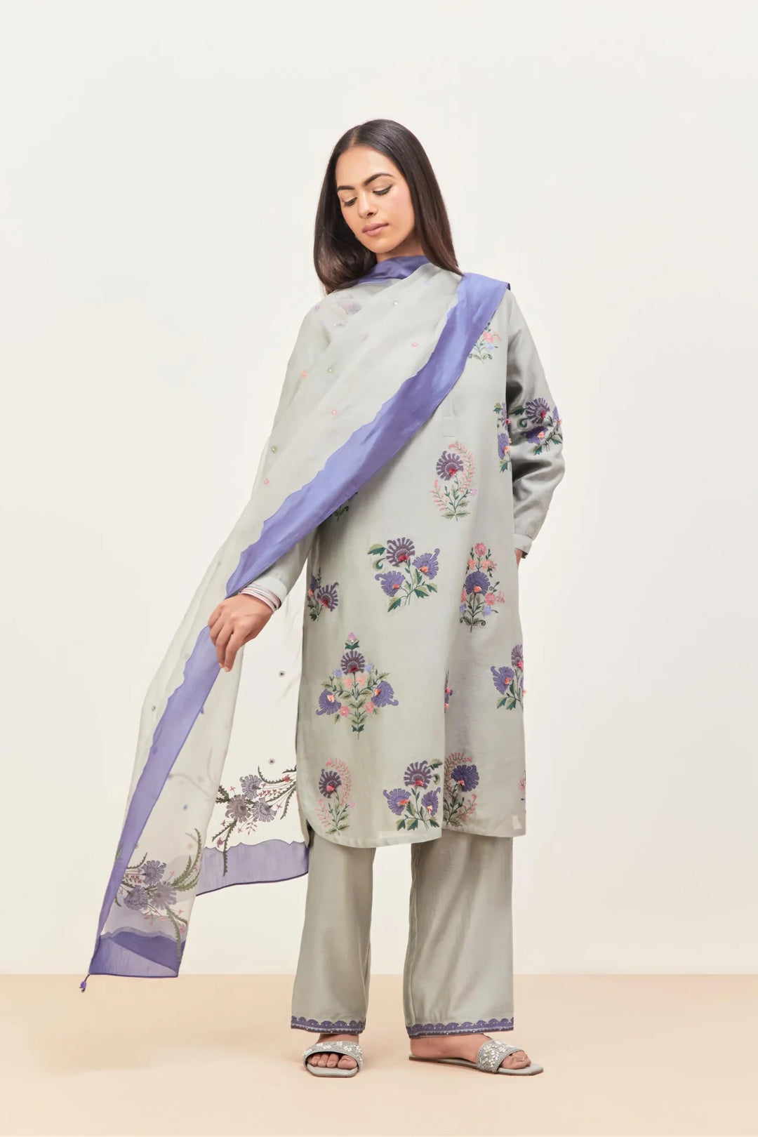 Sumaira - Daisy Ivory Long Kurta with Palazzo and Dupatta