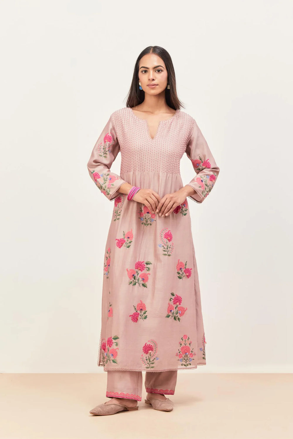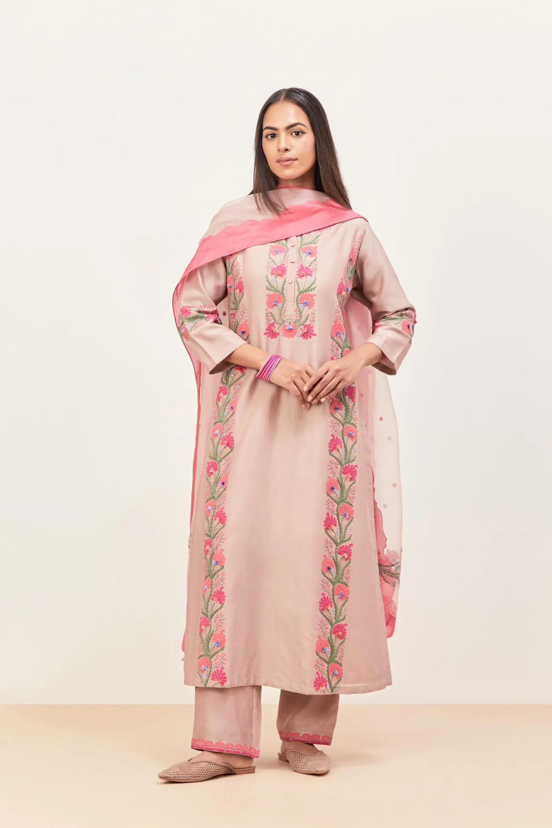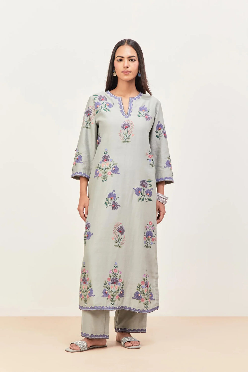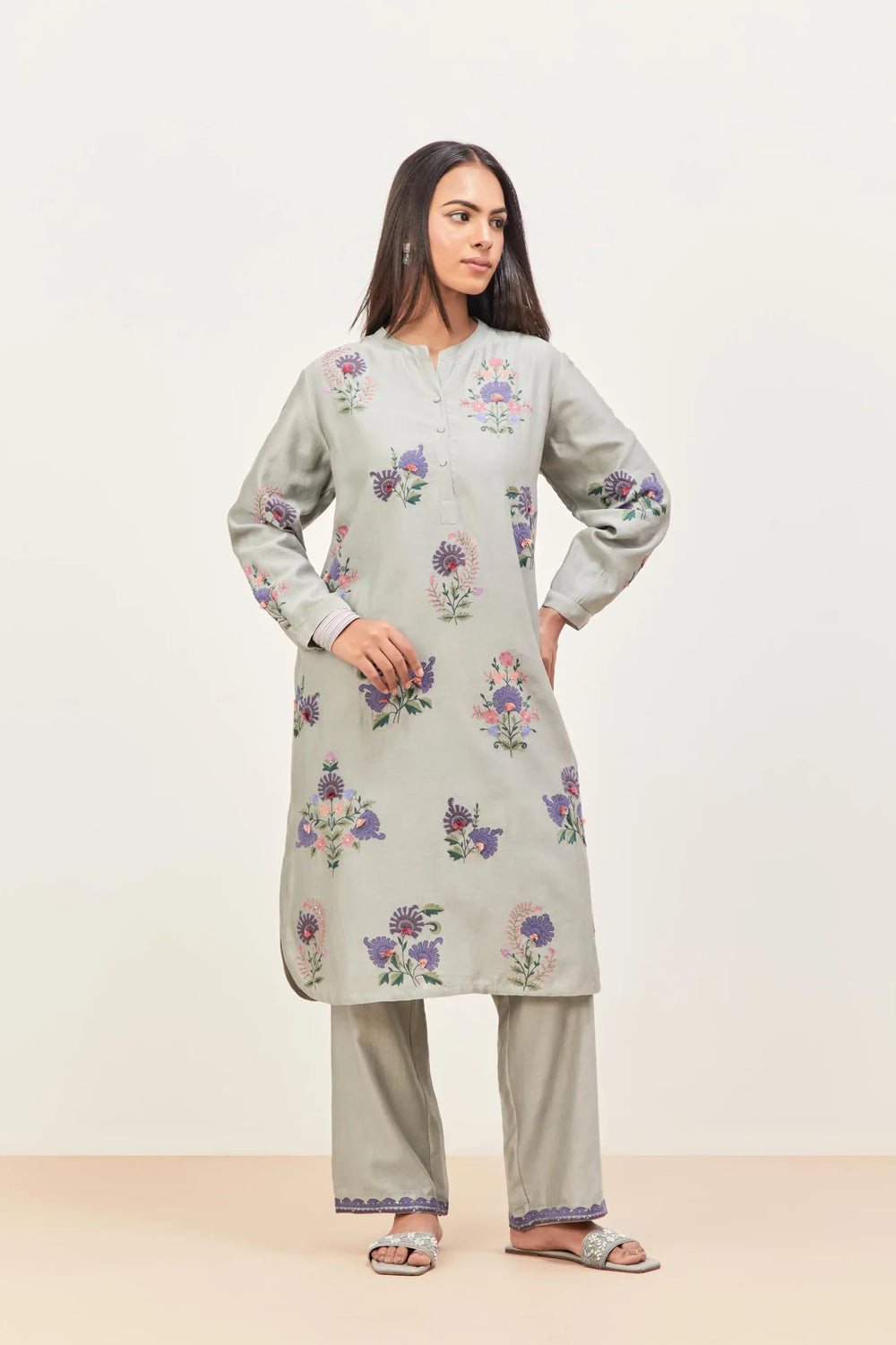 Sumaira - Daisy Ivory Long Kurta with Palazzo and Dupatta