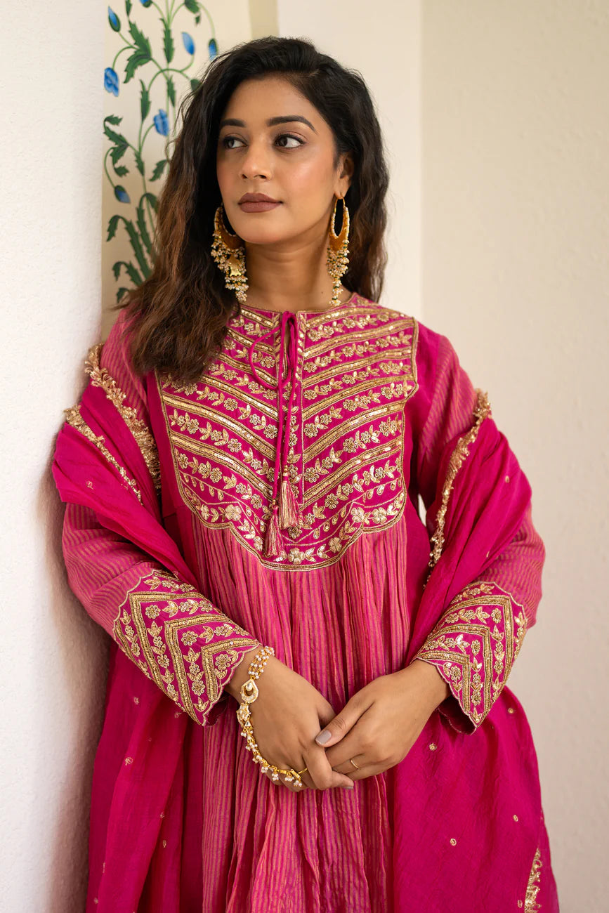 Pink tissue centre gathered suit set