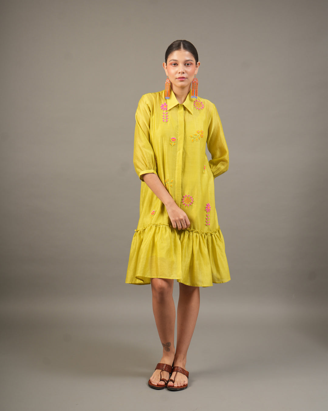 Yellow Statement Chetah Shirt Dress