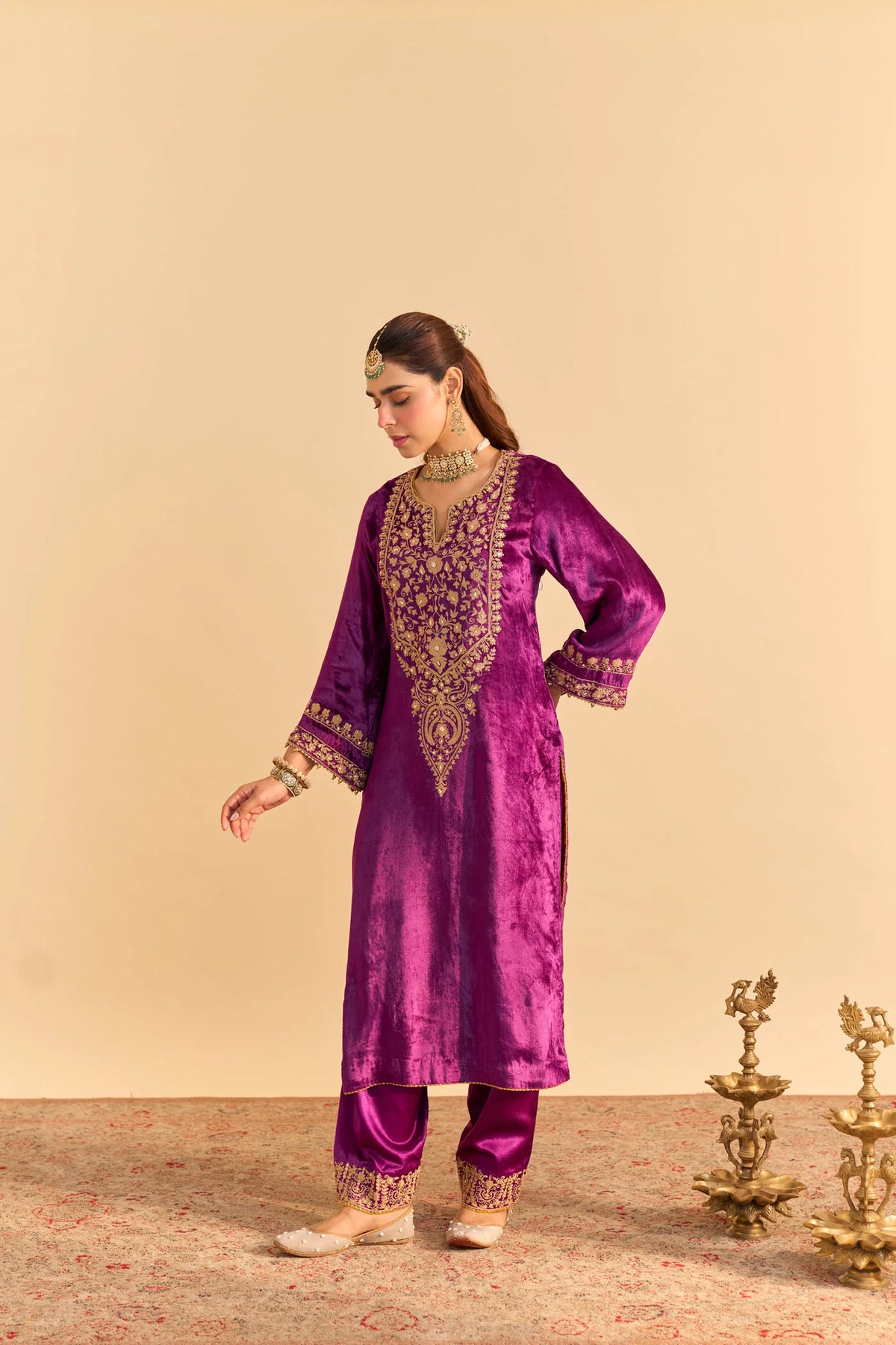 Kurta - Velvet Silk; Bottom - Velvet Silk