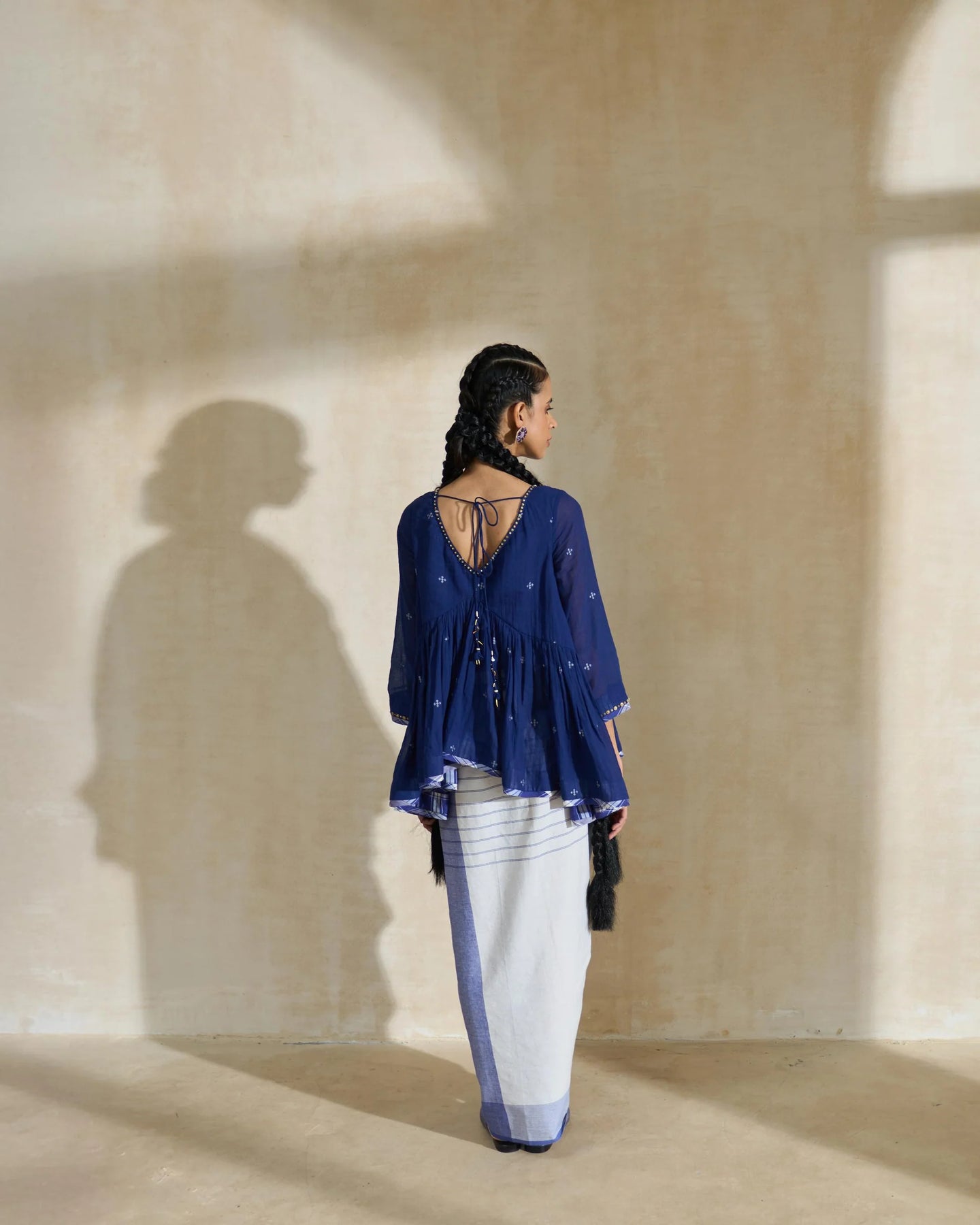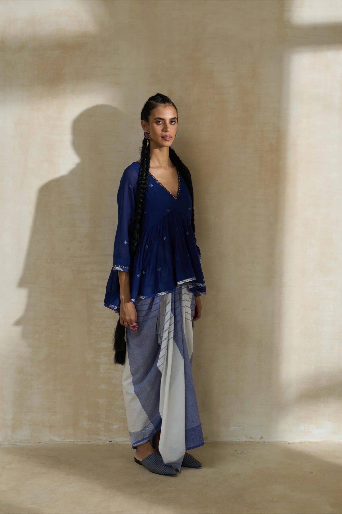 Handwoven yarn-dyed Bengal 100% cotton Jamdani butti with a Jamdani border, finished with 100% cotton check piping