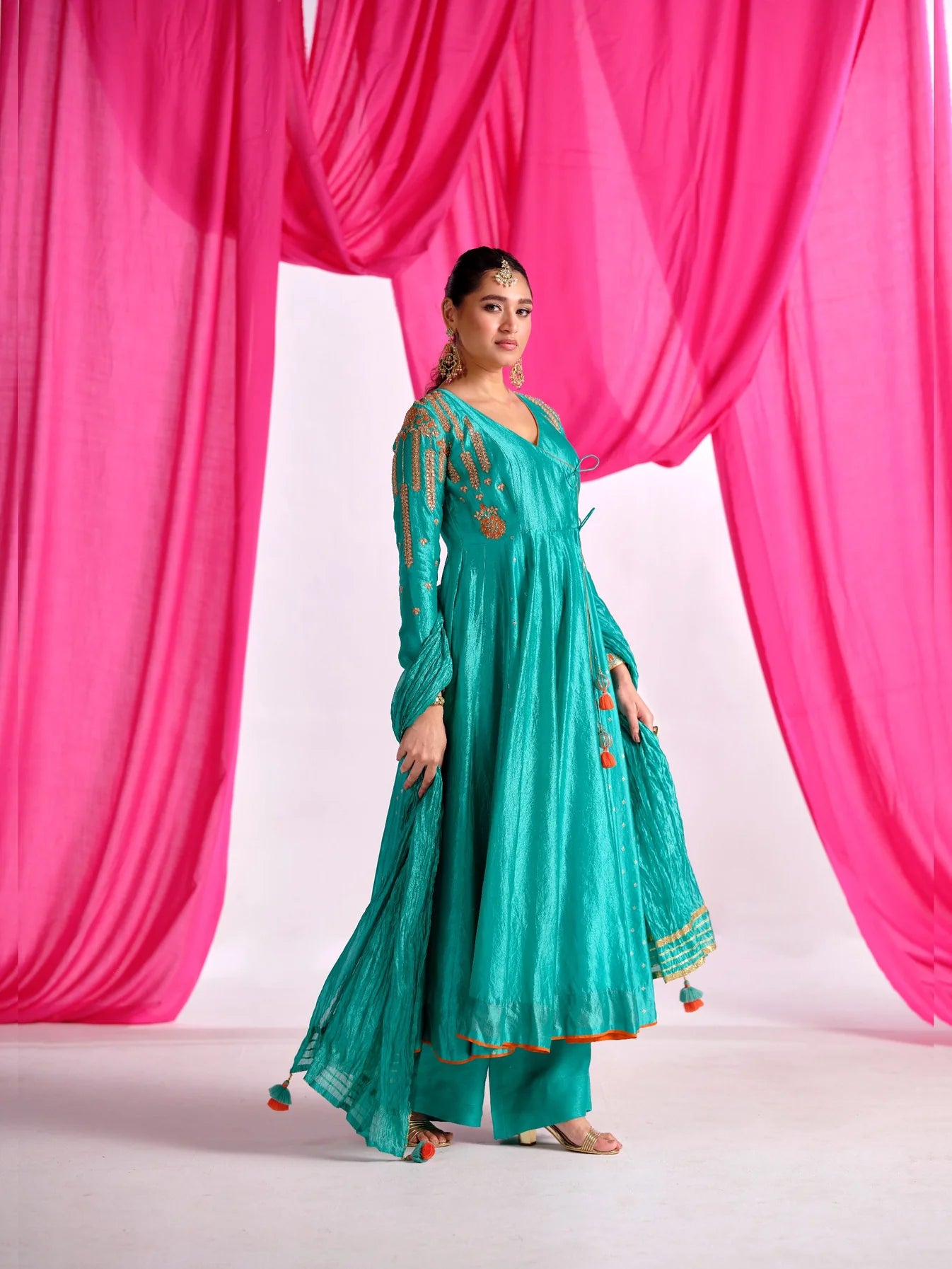 Top - Silk Fabric Bottom - Flat Silk Dupatta : Silk Fabric