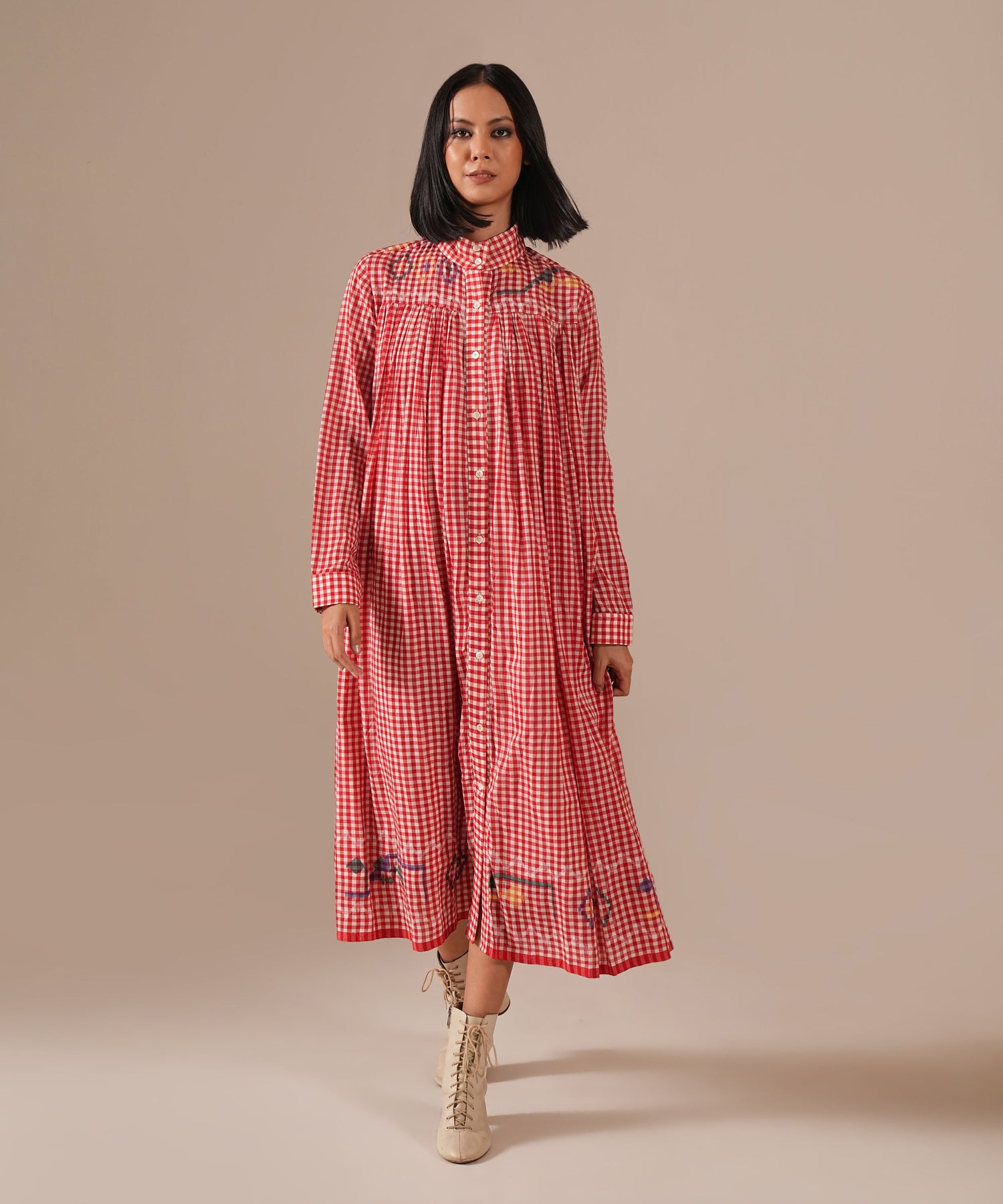 Embroidery/Print: gentle pleats at the front and back