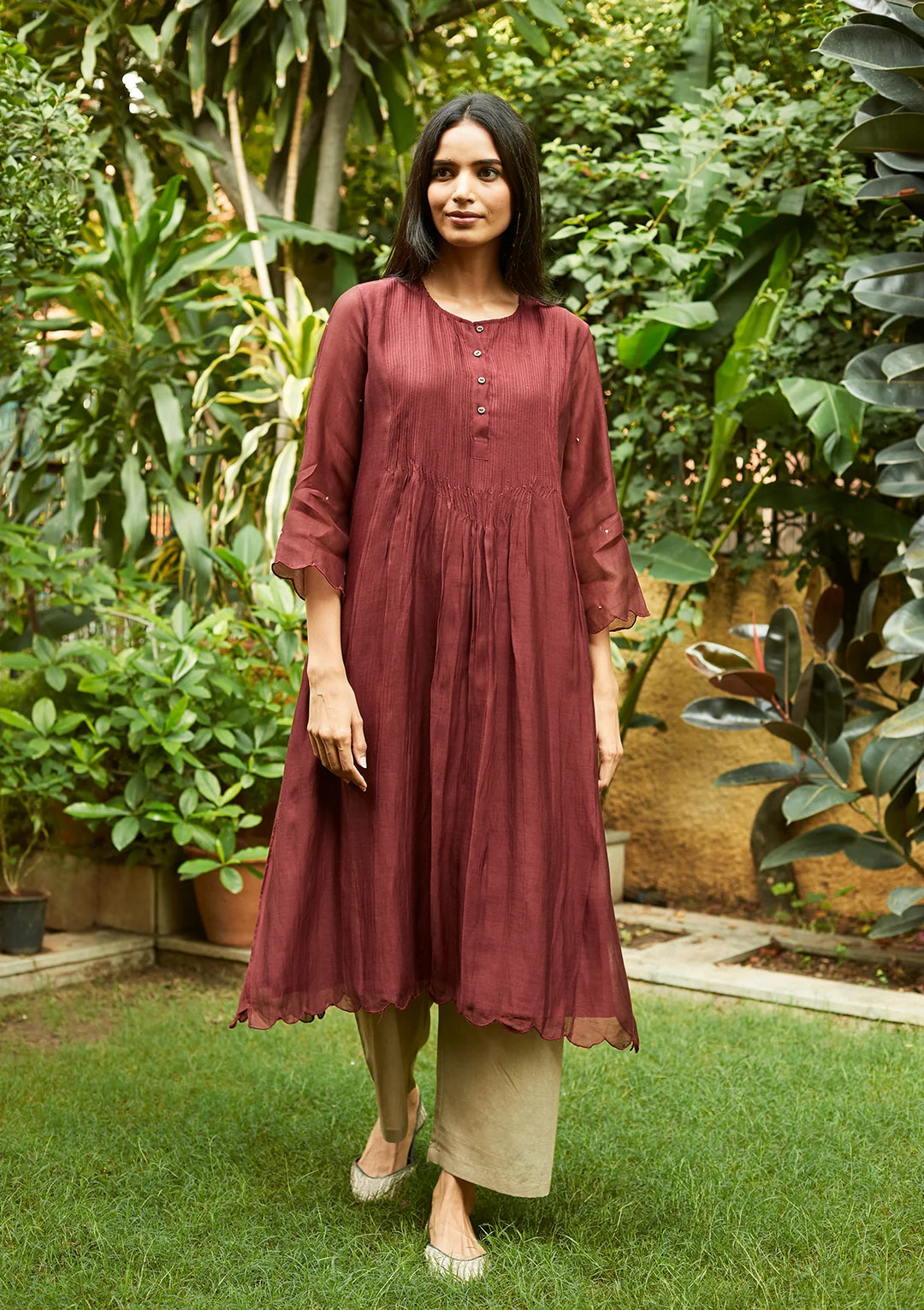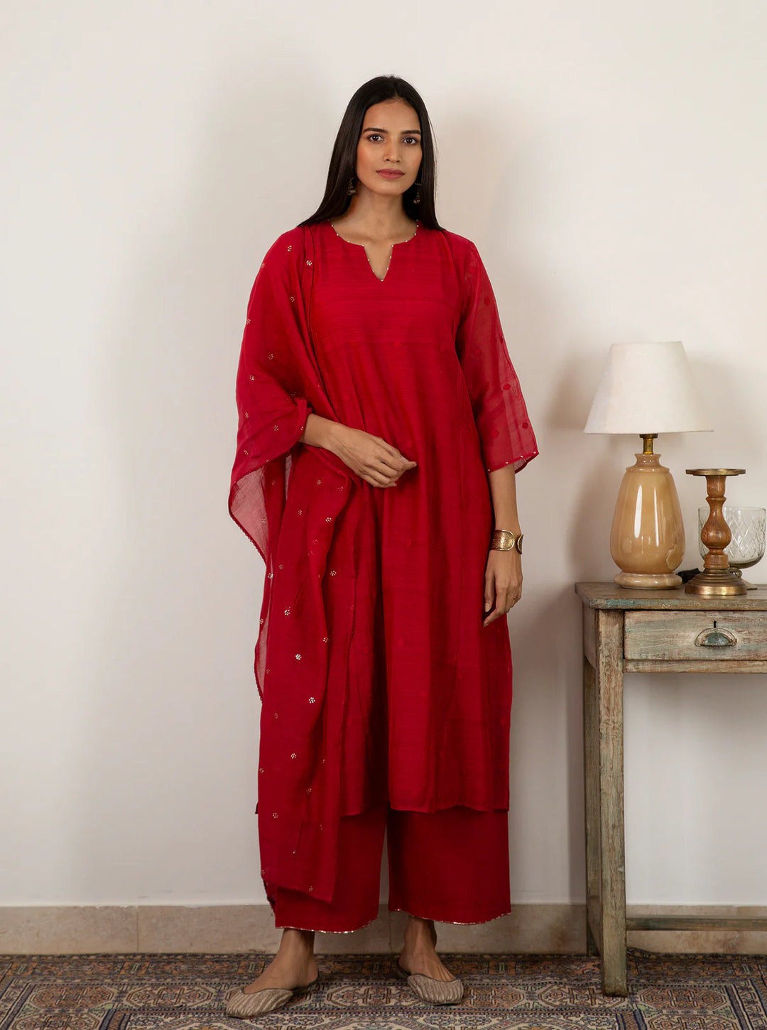 Sobia - Burnt Orange Long Kurta with Palazzo and Dupatta