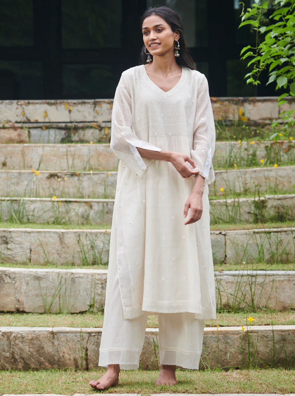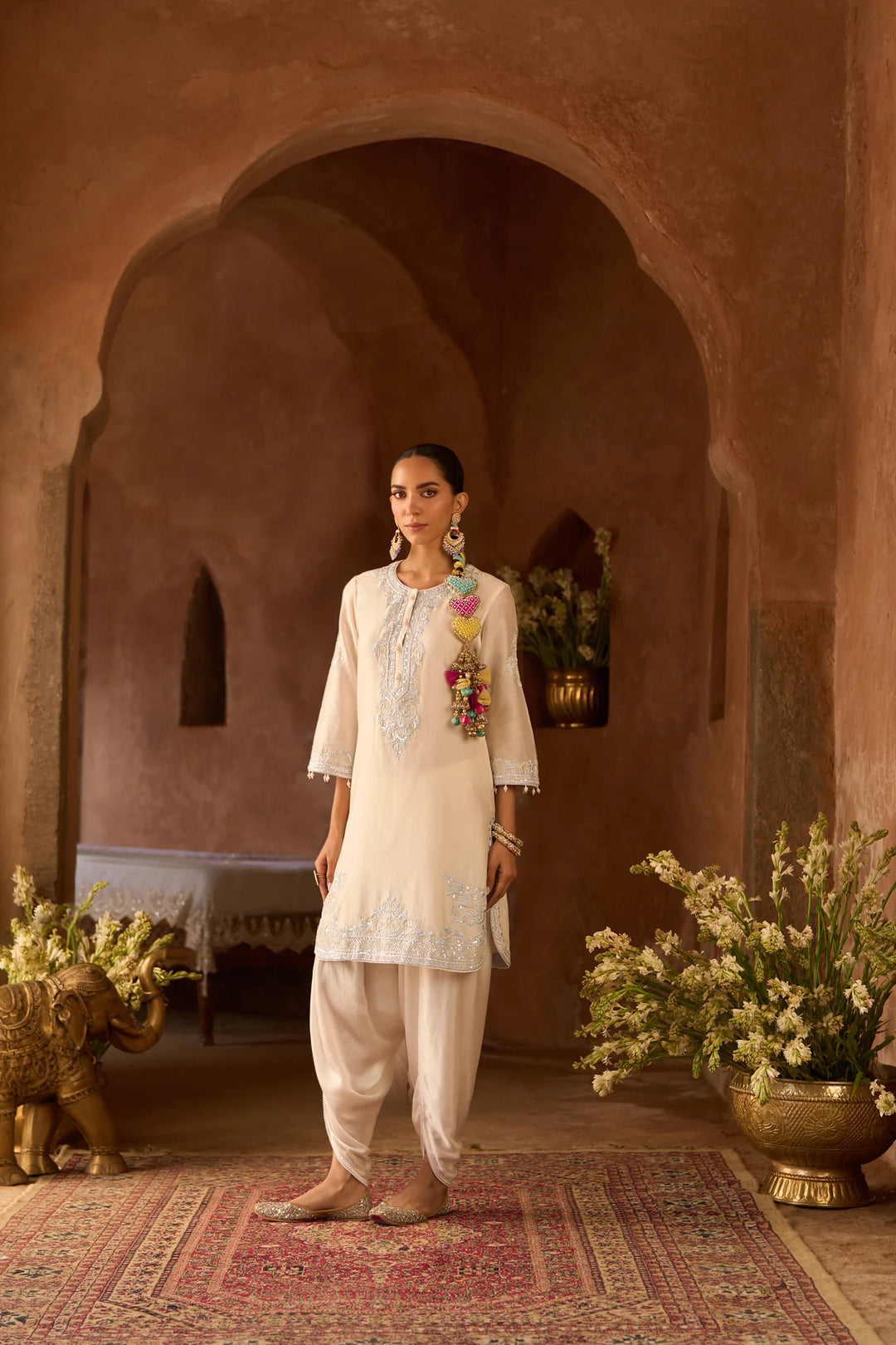 Ruhi - Daisy Ivory With Blue Short Kurta And Dhoti