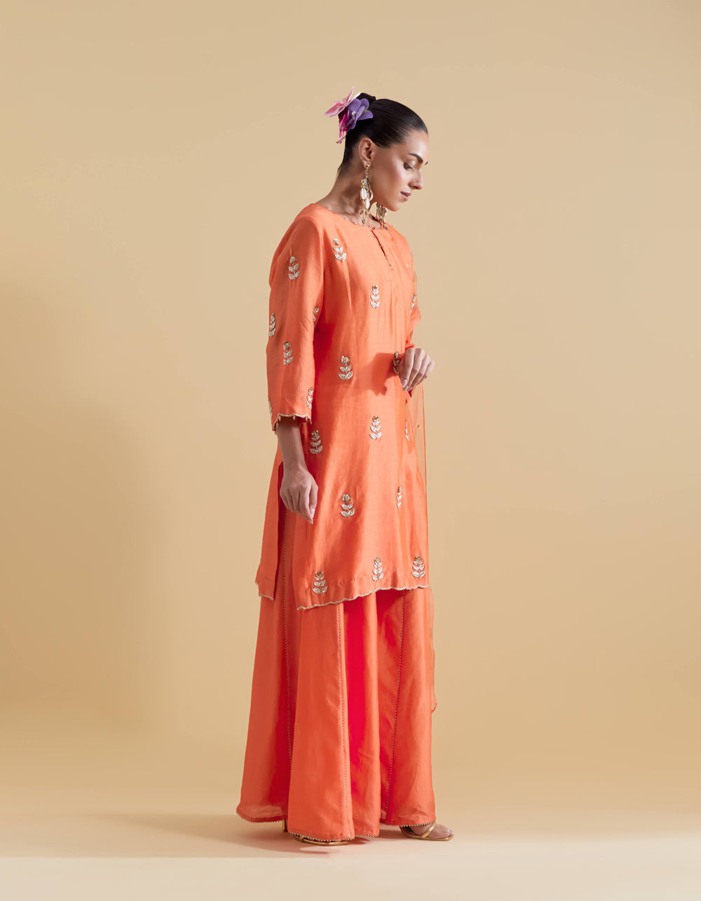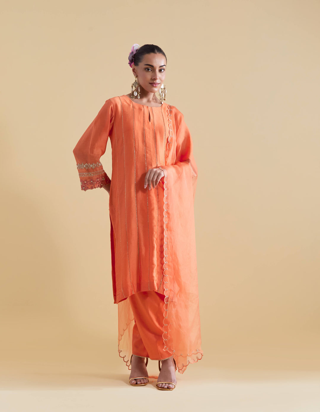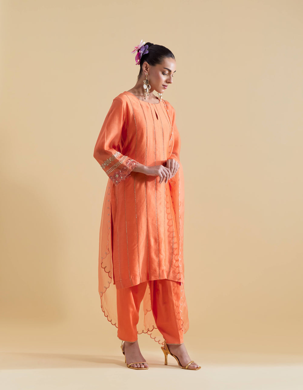 Organza Dupatta with Scallopped Edges and Cheeta in Orange