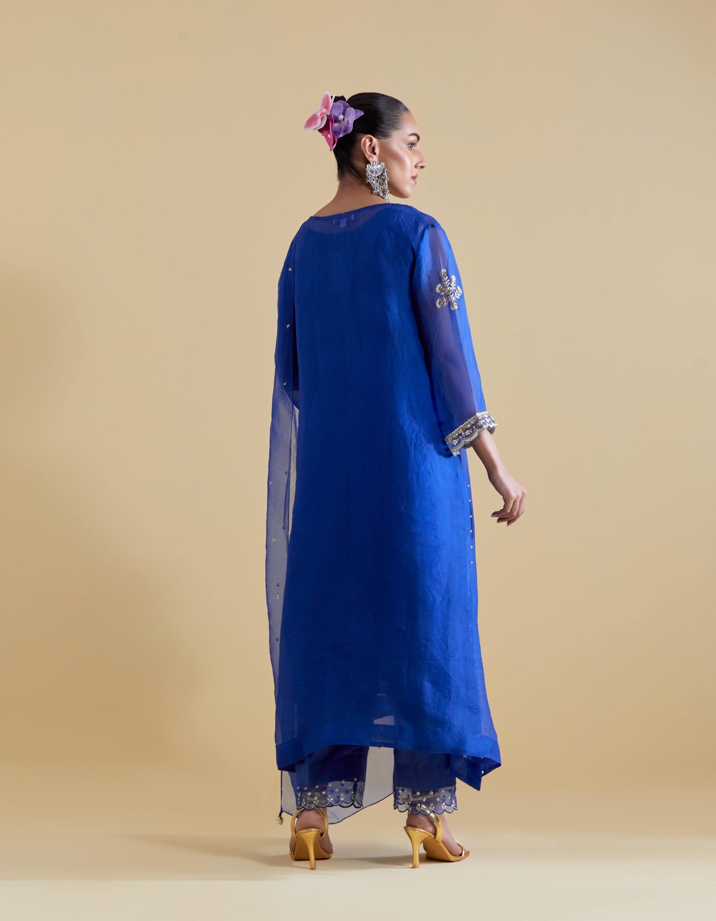 Royal Blue Scallopped V Neck Kurta Set with a Slip