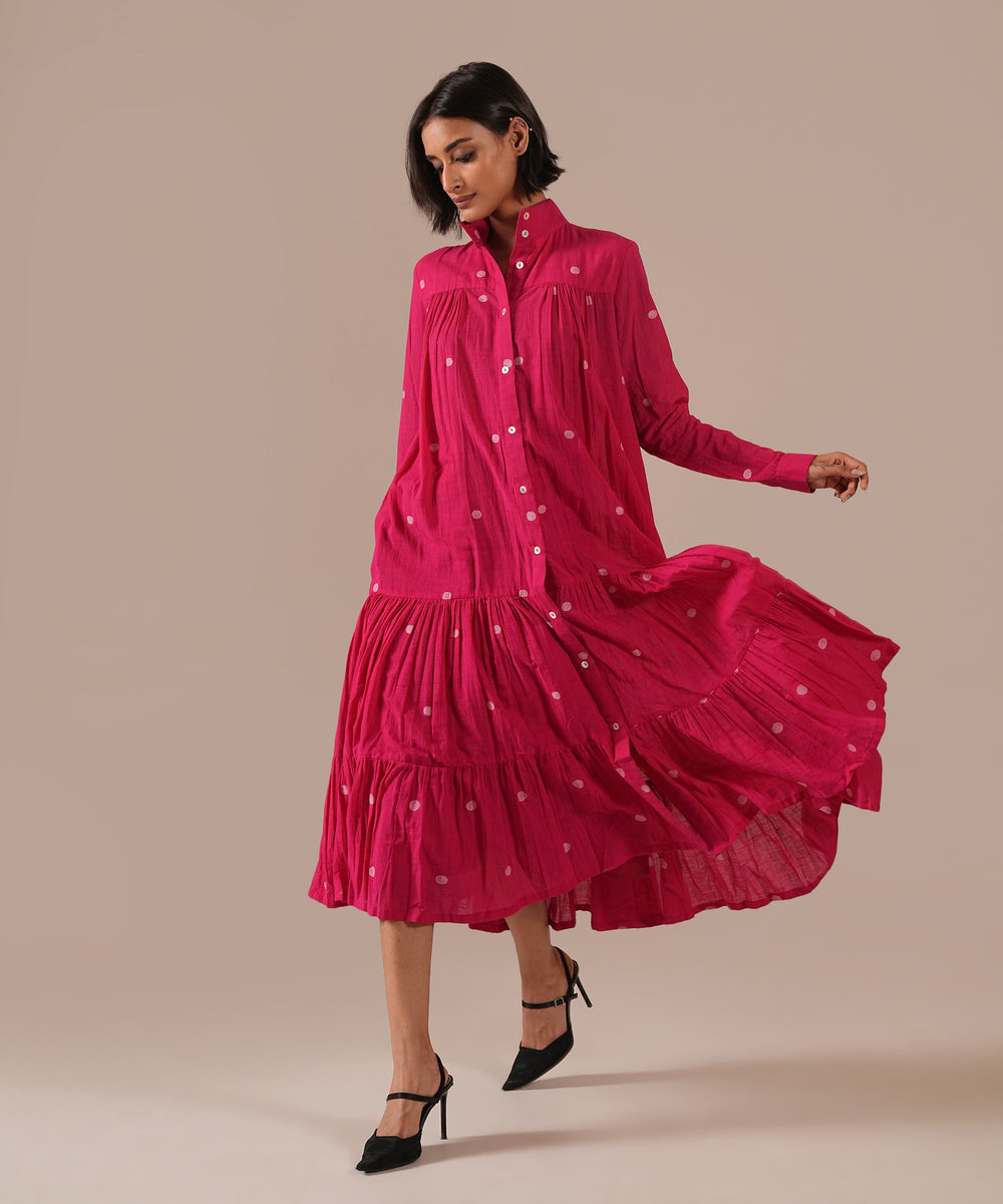Noor - Dabka Zardozi Embroidered Chanderi Silk Hotpink Anarkali Set