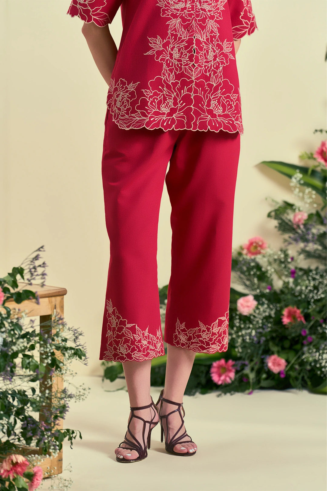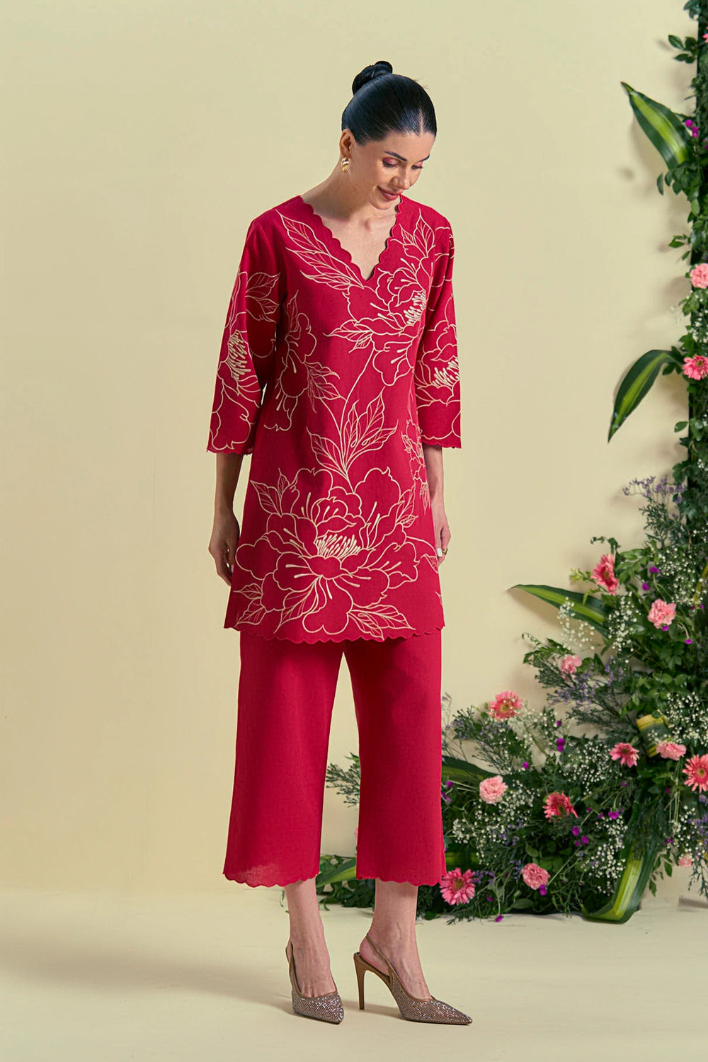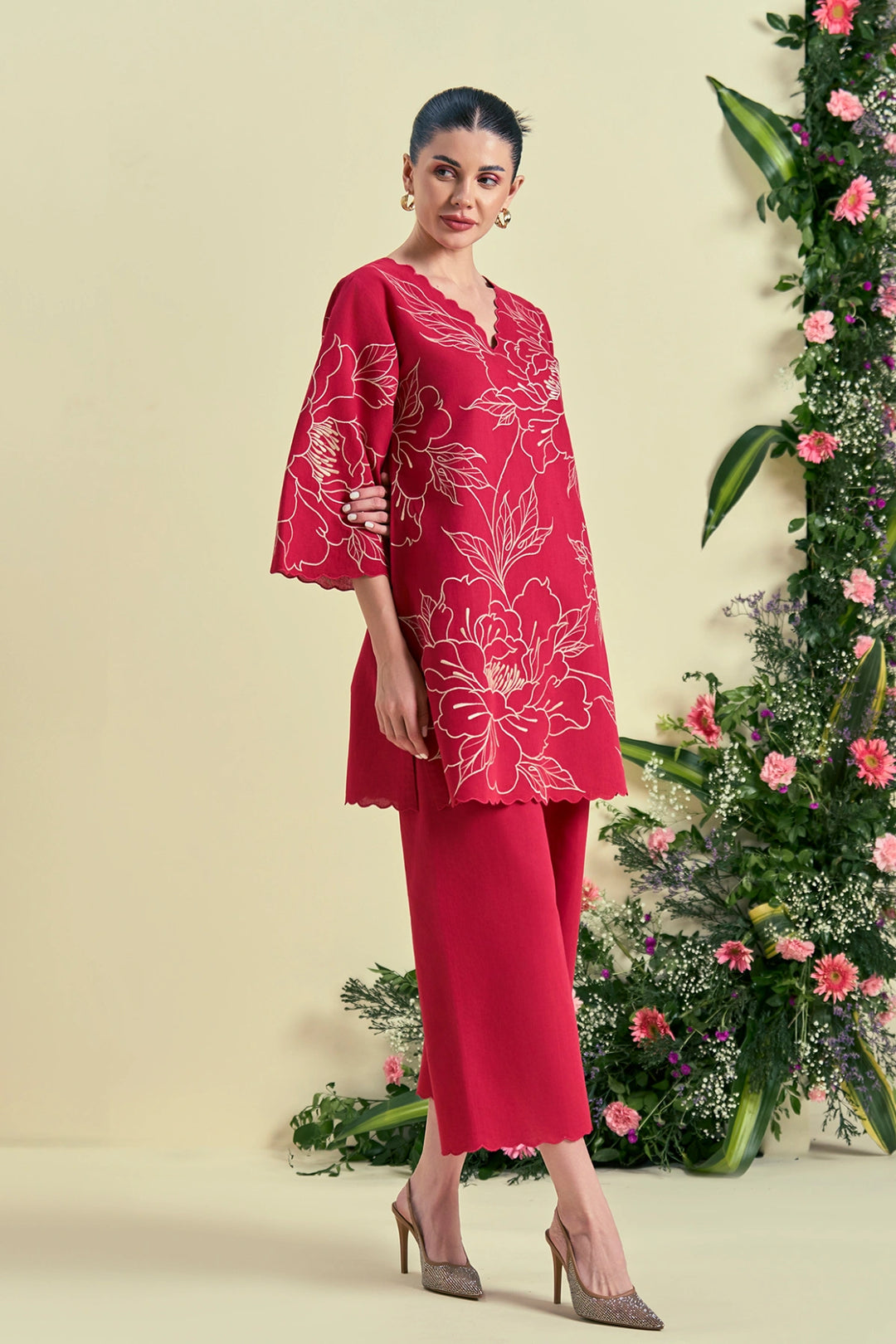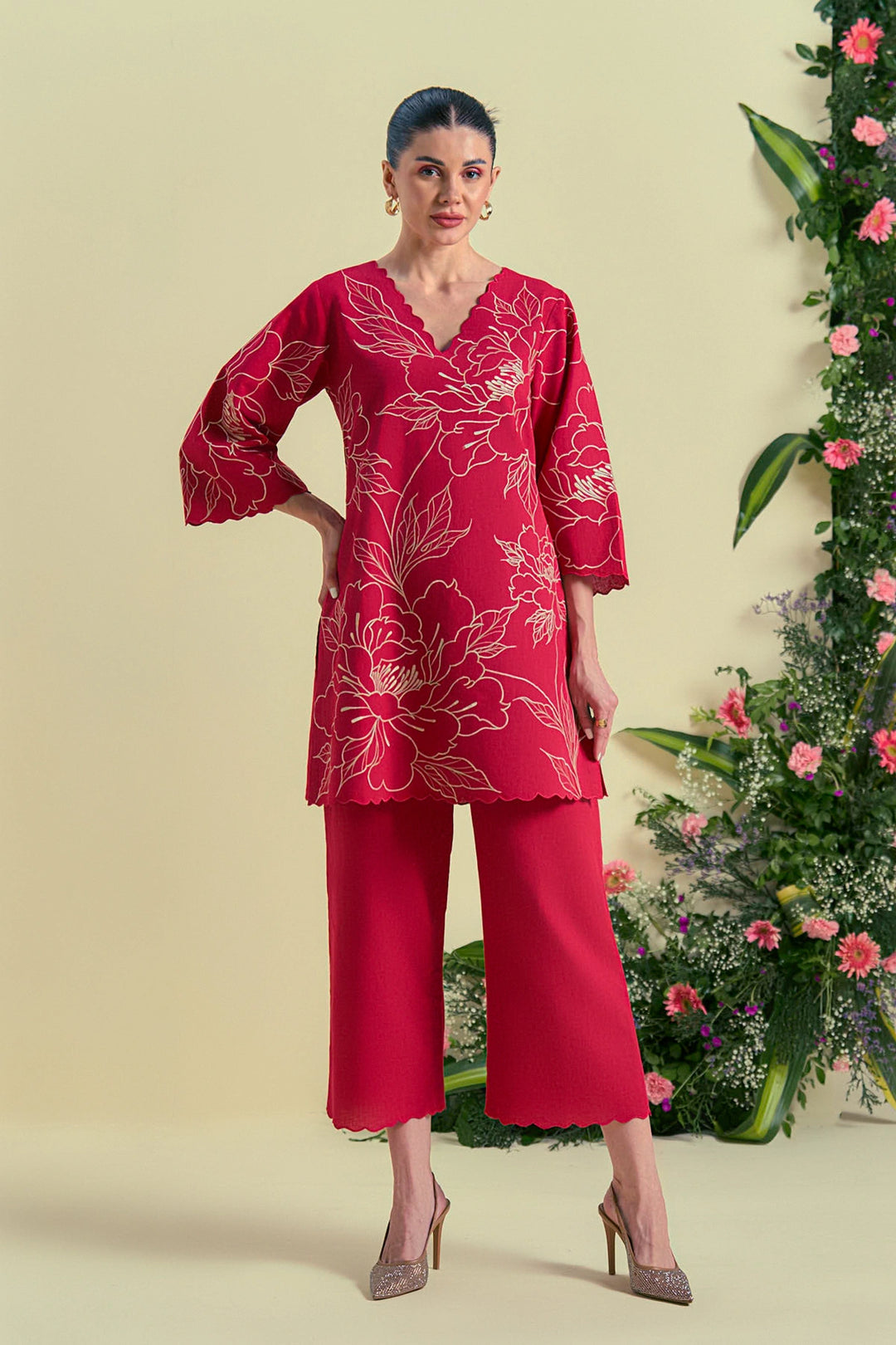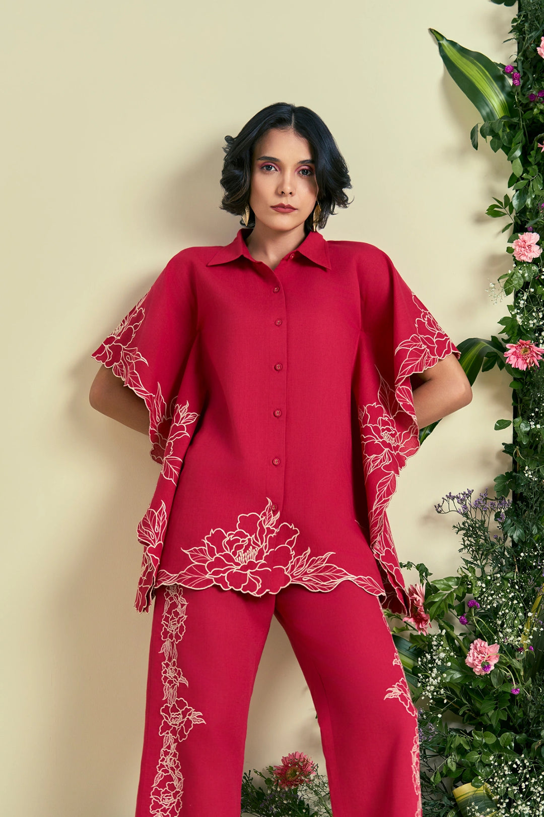 Red Embroidered Sharara and Cape Set