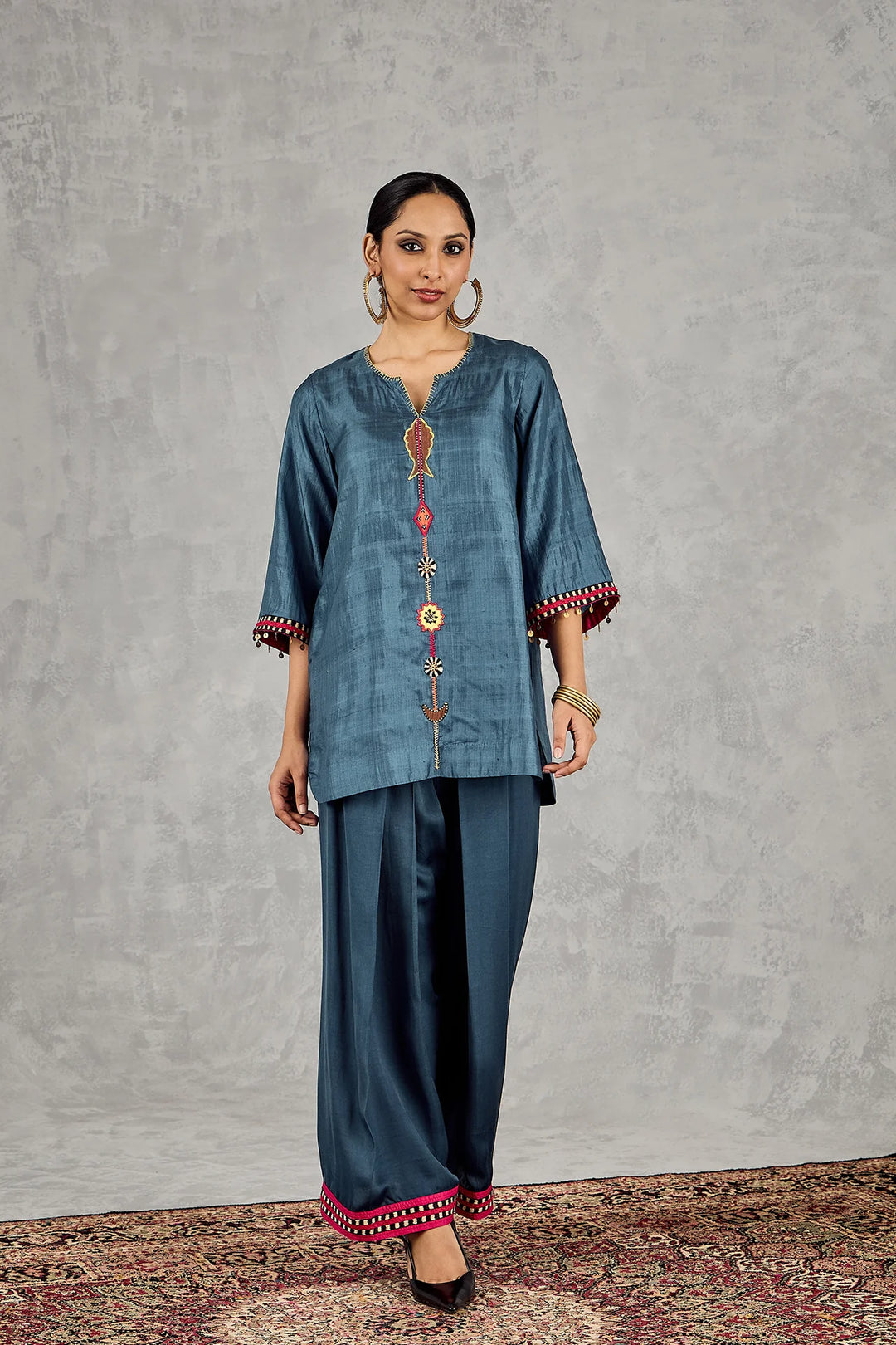 Burnt Orange and Blue Colourblock Namah Tunic Set