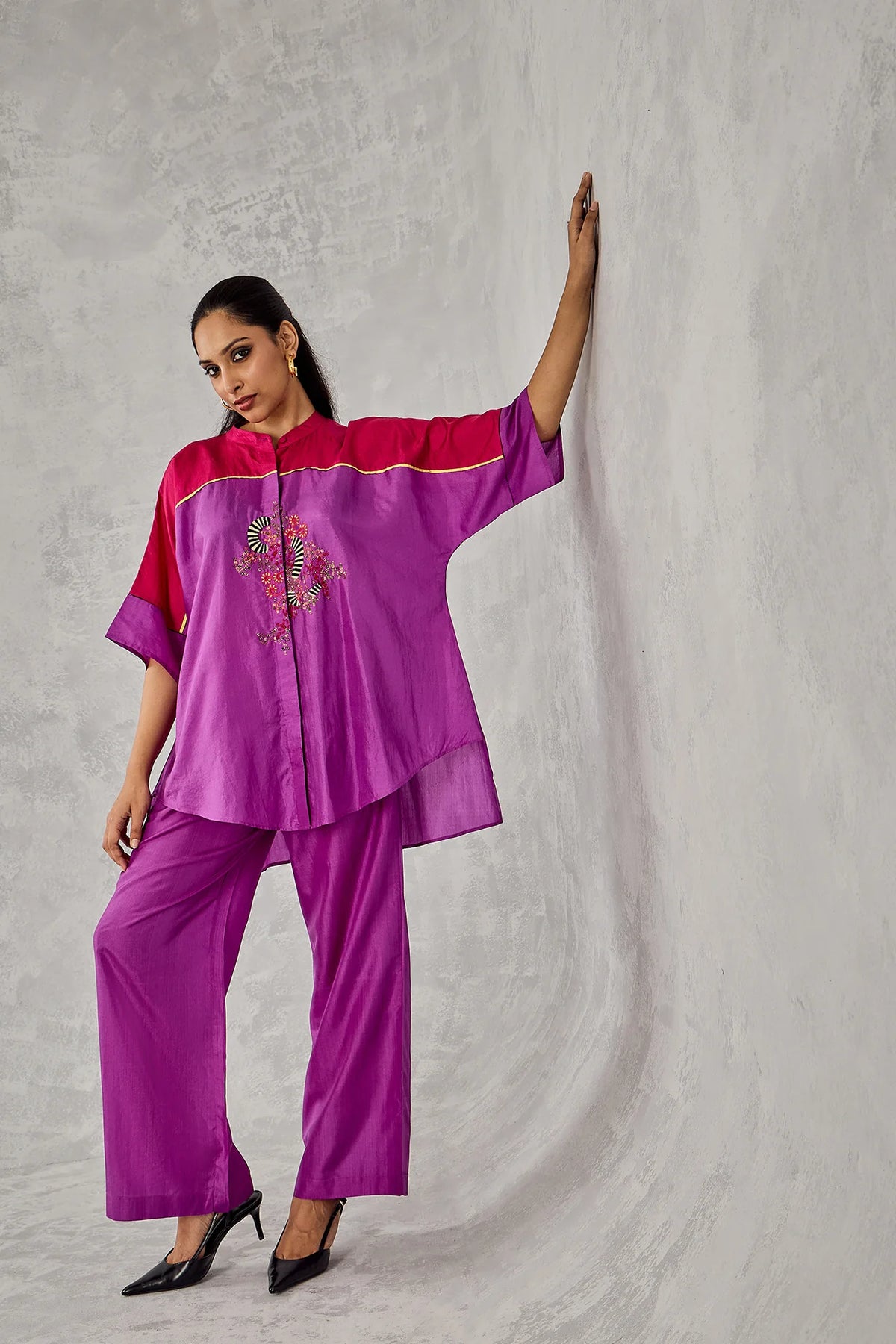 Purple and Hot Pink Colour Block Namah Tunic Set