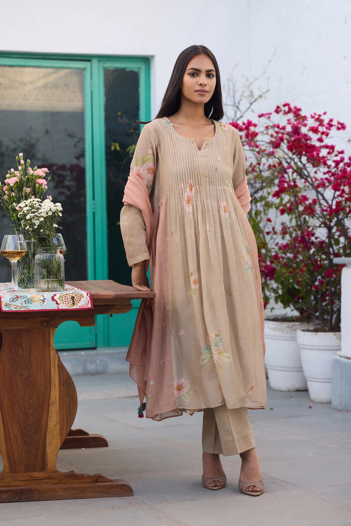 Kurta-Silk chanderi, Pants- Glace cotton, Undershirt-cotton, Dupatta-Chanderi