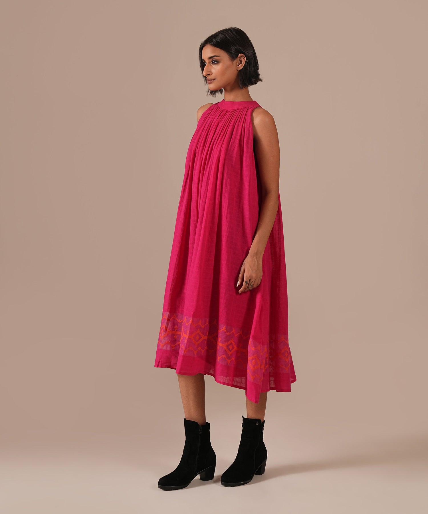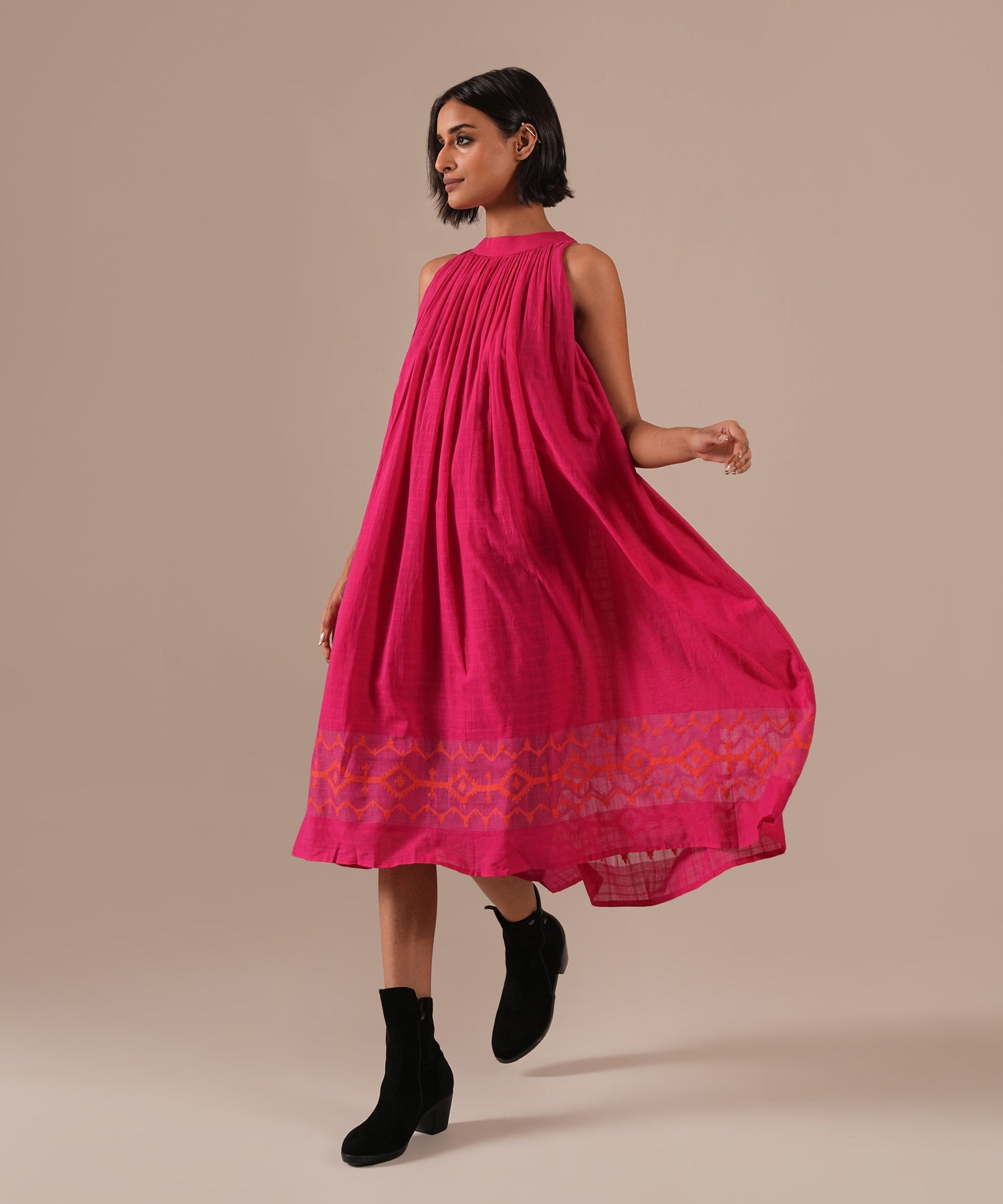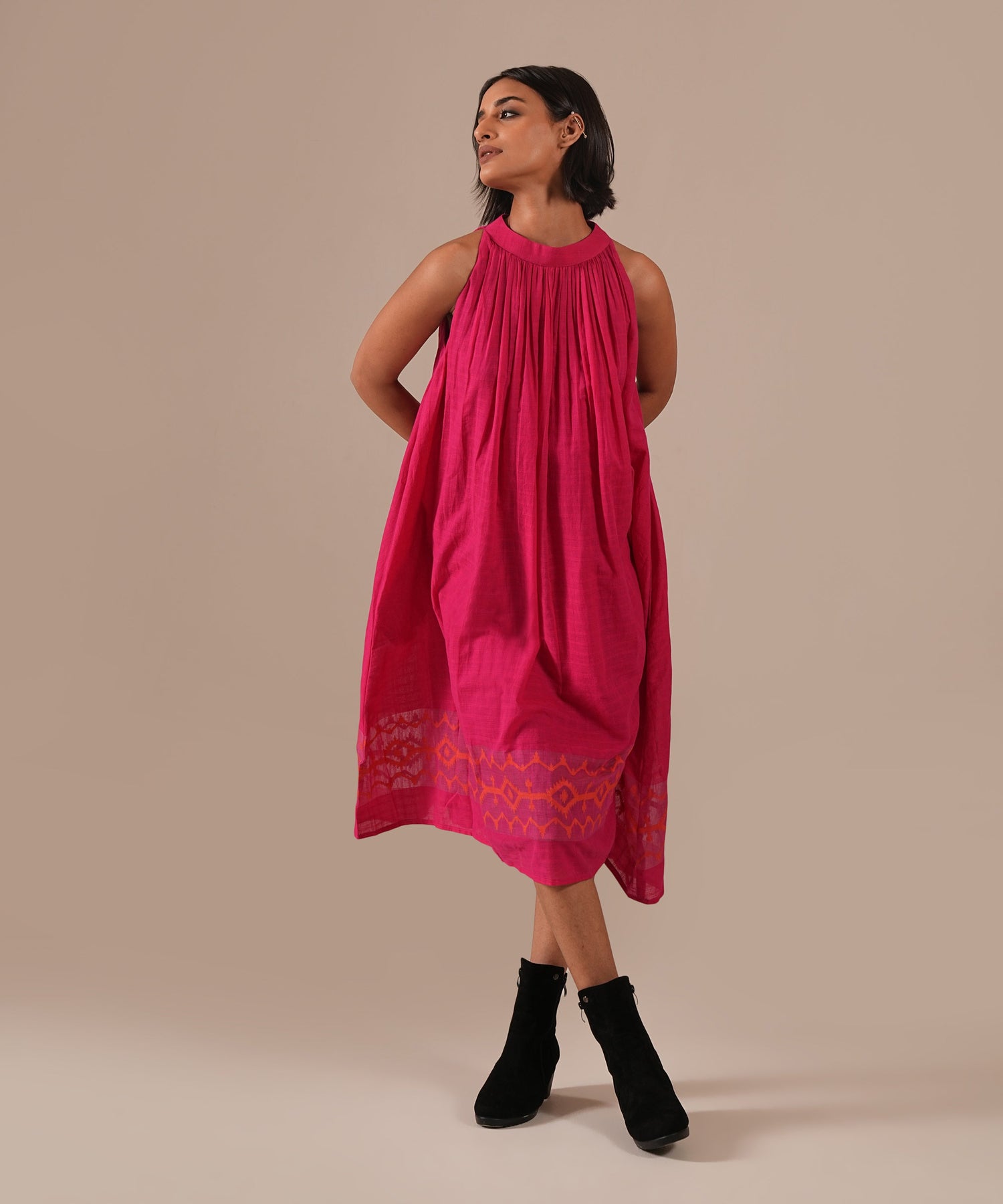 Embroidery/Print: gentle gathers and back zipper